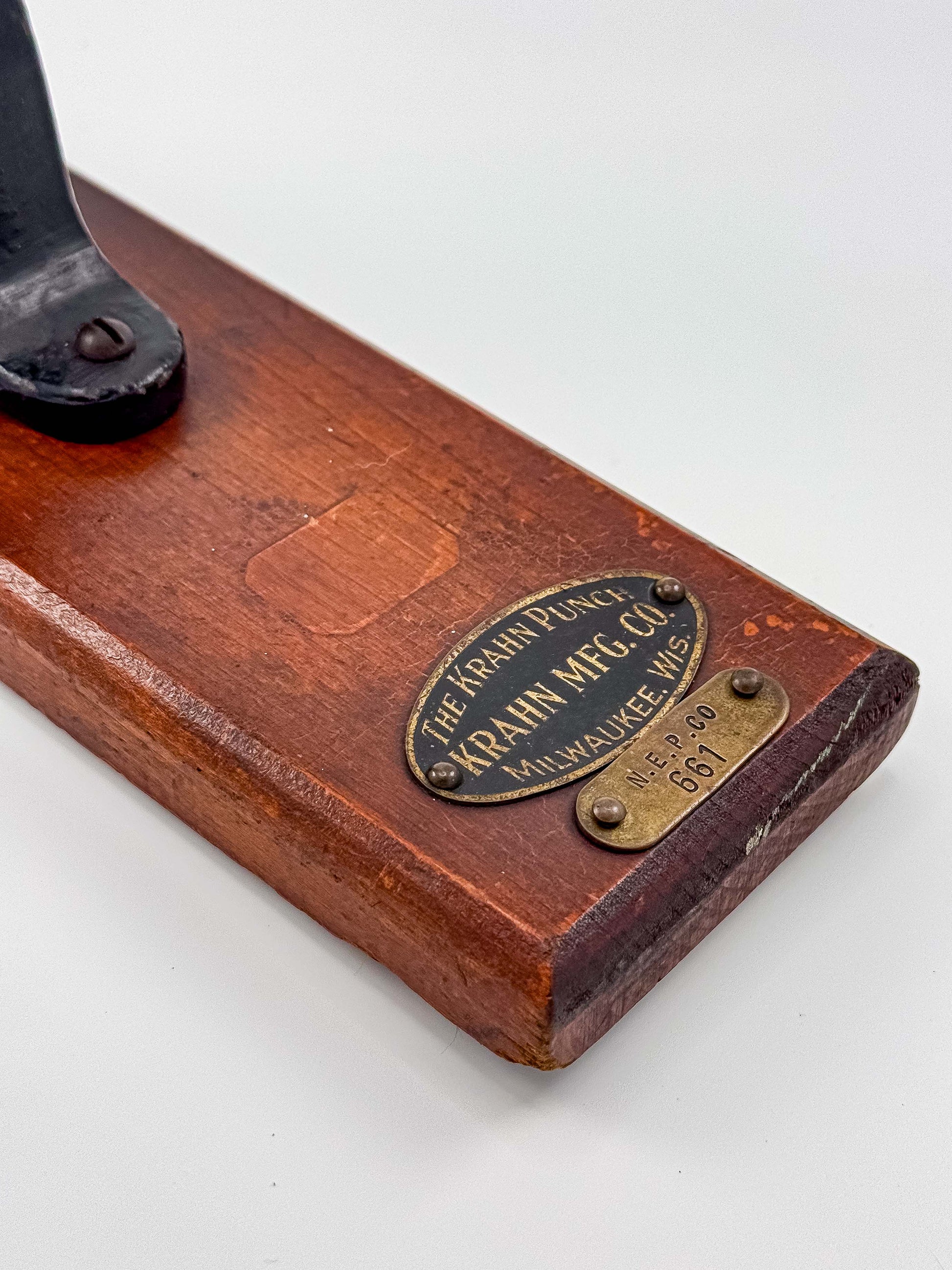 A beautifully rugged piece of industrial-office vintage: this Krahn Punch from Milwaukee Mfg. Co. (Milwaukee, WI) delivers a dose of early 20th-century character to your collection or workspace. Built with solid cast construction and a firm lever action, the punch carries the patina and signs of use that make it authentically vintage—ideal for display, functional décor, or as a conversation starter.