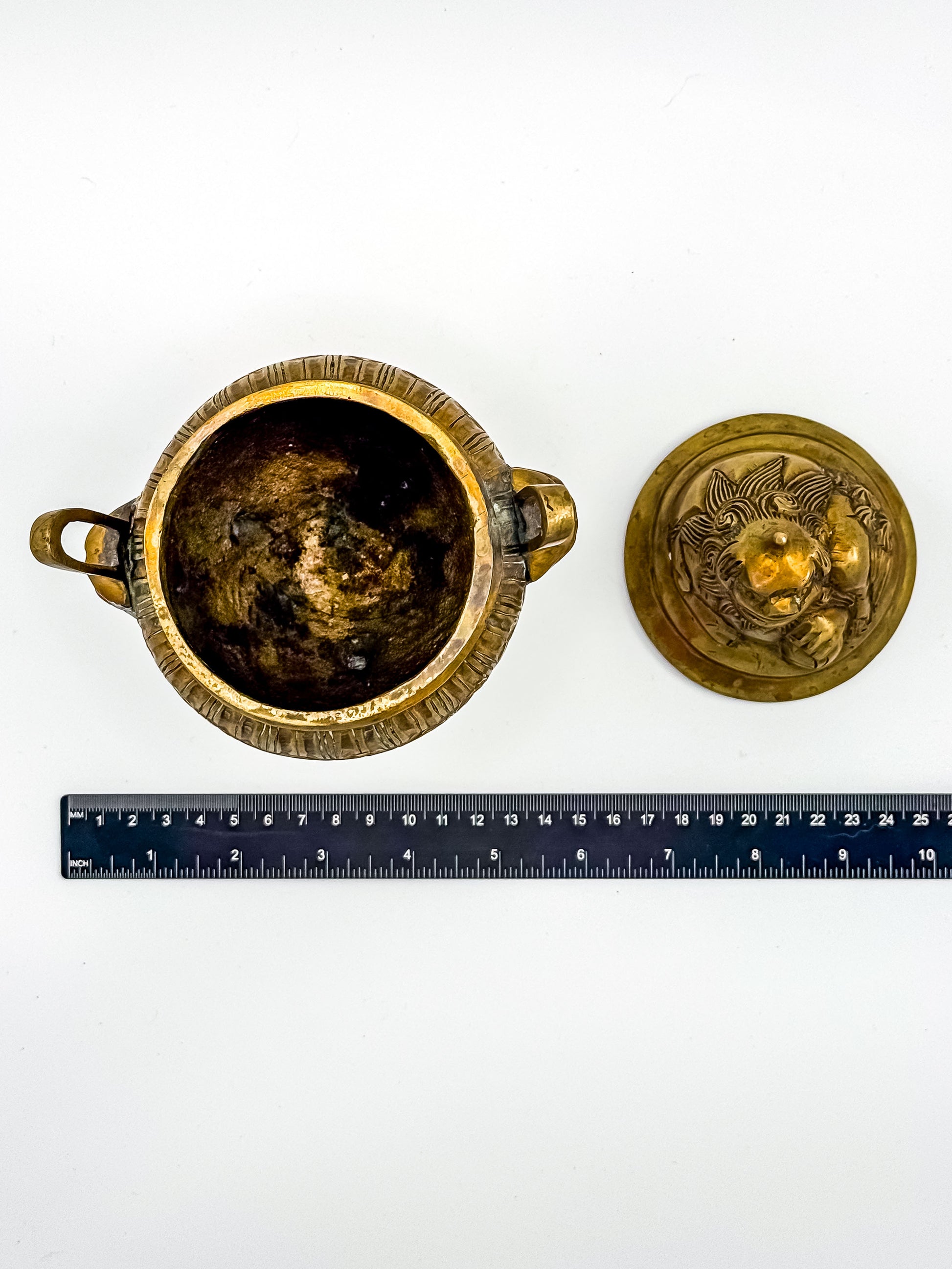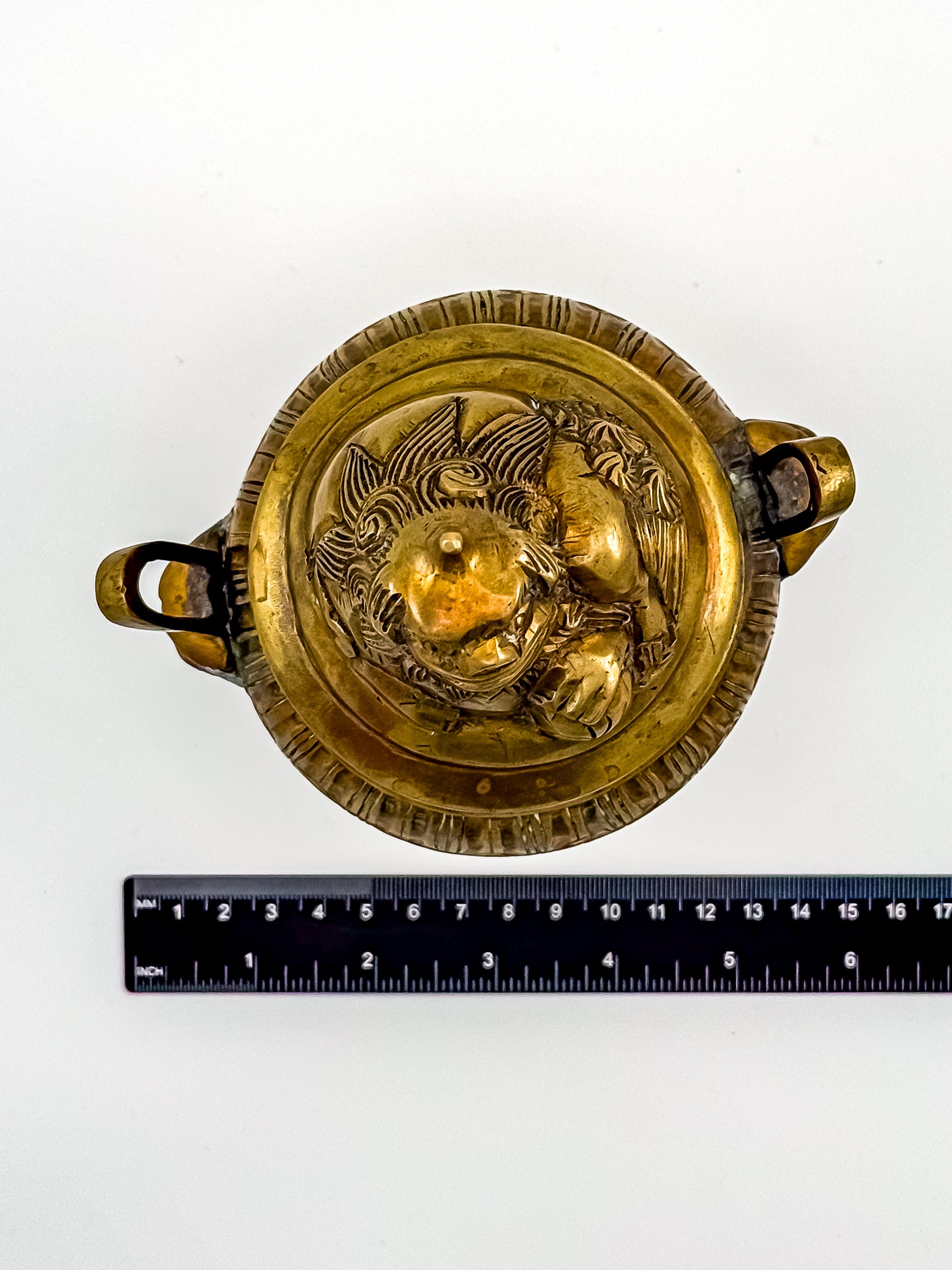 Vintage Brass Foo Dog Tripod Incense Burner with Lid